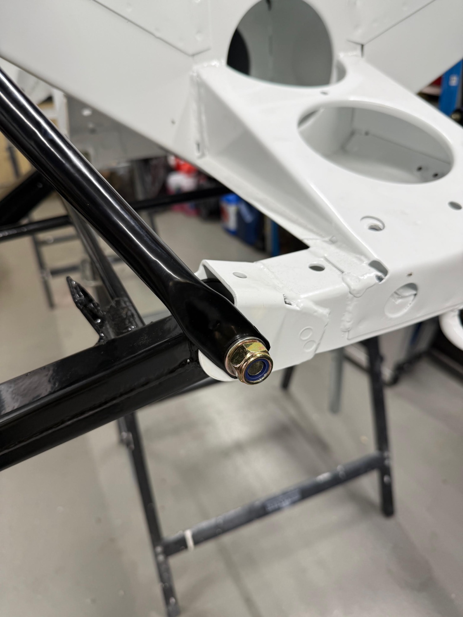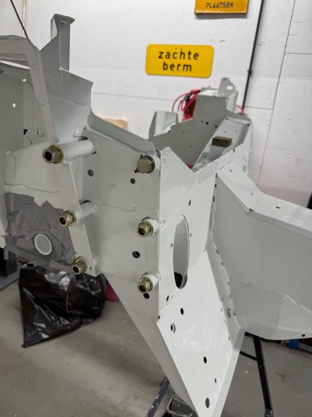 Neem de achteras. Geen onderdeel waar je snel warm van wordt, maar bij een restauratie telt juist het onzichtbare mee. Jos kiest hier bewust voor geel-gepassiveerde bouten. Niet alleen vanwege de sterke corrosiebescherming, maar ook vanwege die authentieke vintage uitstraling die perfect past bij de geest van de Grand Raid.